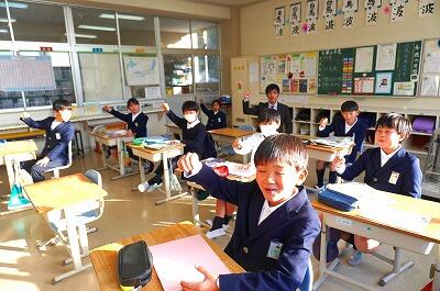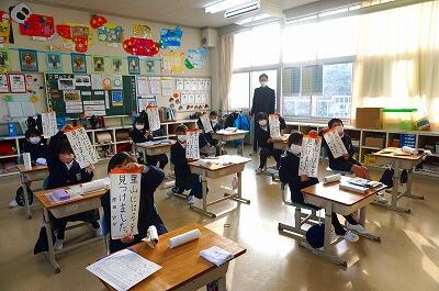 6日から3学期が始まり、朝の寒さにも負けず、子ども達が小学校までの坂をたくさんの荷物を持って登校してきました。坂の上の校門に立っていると、「お年玉をもらったよ。」「お餅を〇枚食べた~。」などと、たくさん話しかけてくれ、元気な子ども達に久しぶりに会え、嬉しく思いました。朝1番に始業式が行われ、1年間の締めくくりの3学期が始まりました。(ケーブルテレビの方が来られ、始業日の様子を取材されました。)3学期は53日間(6年生は50日間)と短い学期になりますが、「伸び」や「成長」を感じることができるように、しっかりまとめをしていきたいと思います。保護者の皆様、地域の皆様、本年もどうぞよろしくお願い致します。