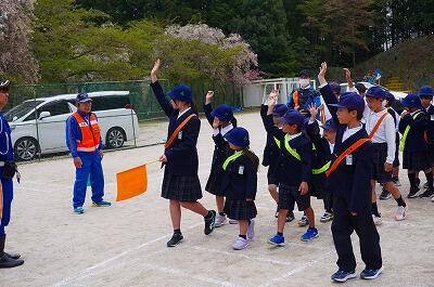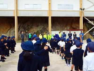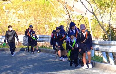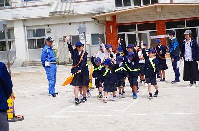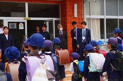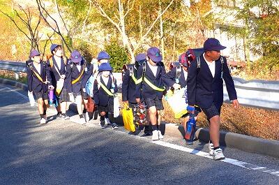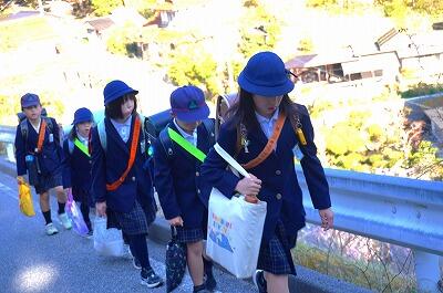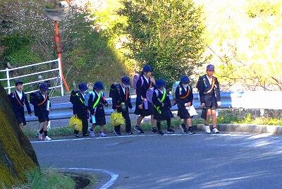 【登校の様子】・・・通学班で上手に並んでの登校です。挨拶も大きな声でできていました!