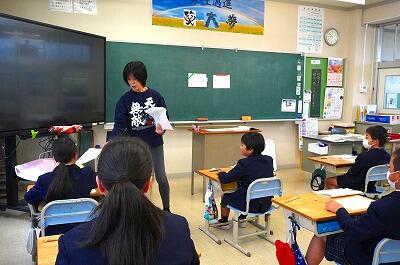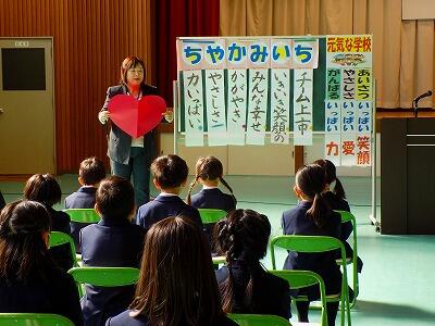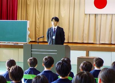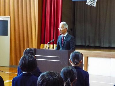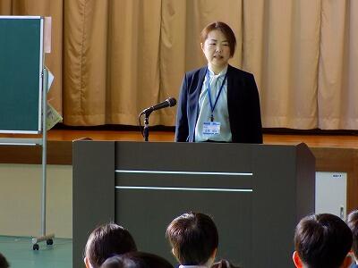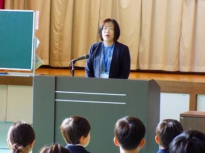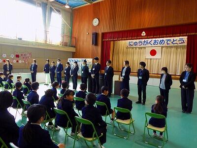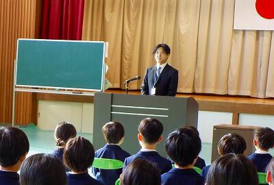 【着任式】・・・この度の異動で、4名の先生が上市小学校に来られました。
