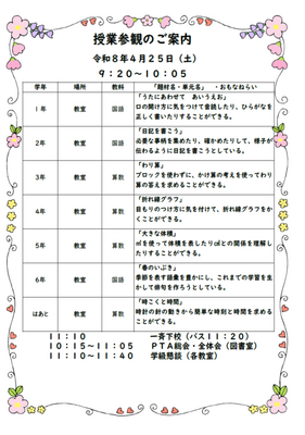 4月8日、令和8年度がスタートしました。この日は、新学期を待っていたかのように良いお天気で、千屋小学校からの子ども達も、元気に学校までの坂を上ってきて「おはようございます」と気持ちのよい挨拶をしてくれました。まず初めに着任式があり、新しく上市小学校に来られた先生方を紹介し、先生方の挨拶がありました。子ども達は先生方の挨拶を目を輝かせて一生懸命聞いていました。着任された先生方からも「いい姿勢で真剣に話を聞いていて、子ども達、すごいですね。」とほめていただき、嬉しく思いました。その後、始業式があり、それぞれの学級での活動がありました。どの学年も素晴らしい出会いができていました。1つ学年もあがり、子ども達も張り切っている様子です。これから授業や休み時間などを通して、担任の先生や新しく来られた先生方と仲良くなって、教室や運動場などから子ども達の元気な笑い声か聞こえてくるといいなと思っています。子ども達に負けないよう、我々教職員も頑張っていこうと思いますので、今年度もどうぞよろしくお願いいたします。