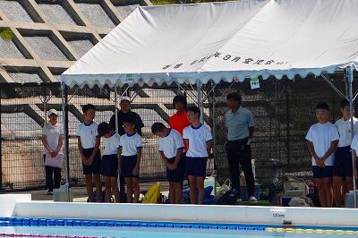 今年が最後となる伝統のある「新見市学童水泳記録会」が29日に行われました。この日のために苦しく大変な練習に耐え、標準記録を突破した13名の子ども達が参加しました。熱中症予防を考慮して、50mの自由形、平泳ぎ、200mリレーと種目の限定がありましたが、13名の選手は、それぞれの種目に全力で臨み、素晴らしい泳ぎを見せてくれました。暑い中、精一杯の力を出し切って、自己ベストを目指して泳ぎきった13名、本当によく頑張りました!リレーでは、男女ともに優勝(女子は4連覇)というアベック優勝を果たしたり、三冠、二冠を得た児童もいたりと本当に大拍手でした。そして何より、最後のひとかきまで粘り強く、最後まで泳ぎきる子ども達・・・カメラのレンズ越しに写るその子ども達の姿に感動を覚え、とても嬉しく感じました。最後の水泳記録会に素晴らしい成果を出すことができた13人、よく頑張りました。暑い中、そしてご多用の中、応援にお越しくださった保護者、ご家族の皆様、熱い、熱~いご声援、ありがとうございました。
