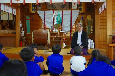 楽しい「上市」満喫の遠足になりました! 5月2日、春季遠足がありました。この日は、前夜からの雨が朝8時頃まで降り続け、心配していましたが、子ども達の願いが叶って遠足に行くことができました。下学年は、国主神社、安田ウッドで話を聞いたり、制作体験をさせていただいたりして、充実した活動ができました。上市公園でのお弁当や遊びは、地面や遊具が濡れていたので、体育館で行いました。「上市」の学区内を知るよい機会にもなり、子ども達も「楽しかった~。」と喜んでいました。お世話になった石田宮司様、安田ウッド様、大変お世話になり、ありがとうございました。