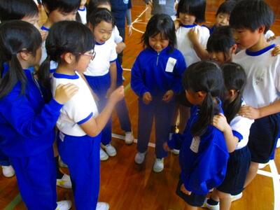 27日に業間活動に、縦割り班6班で「ボール送り」を行いました。運営委員会の児童が、説明をしたり、会の進行をしたりして、全校児童が楽しめるようにと考えてくれました。それぞれの班で、力を合わせて楽しく活動でき、まさに笑顔のあふれた「笑タイム」になりました。