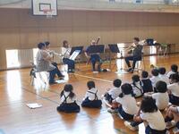 5月13日、札幌交響楽団の方が来校され、子ども達とワークショップを行いました。クラリネット、オーボエ、ファゴット、トランペット、トロンボーンこれらの楽器のソロの曲やアンサンブルの曲を演奏してくださいました。モーツアルト、スコット・ジョプリンや子ども達に馴染み深いジブリ映画の曲もあり、3年生以上の子ども達は一緒にリコーダー演奏もさせてもらいました。今回は6月11日の札幌高級楽団巡回公演の事前学習でしたので5名の楽団員の演奏でしたが、当日は約70名の方が来校する予定です。迫力あるオーケストラの音を聞けることを今からとても楽しみにしています。来校してくださいました札幌交響楽団の皆様、本当にありがとうございました。