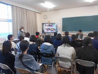 授業参観の後の人権教育講演会は、上市市民センターとの共催で行われ、人権推進委員の平様、佐々木市民センター長様もご来校いただき、日野ボランティアネットワーク代表の山下弘彦先生に講演をしていただきました。先生の様々なボランティア経験をもとに、地域コミュニティの重要性や共助の気持ちの大切さなど、これからの生活で参考にしていきたい取り組みをたくさん教えていただきました。「支え・支えられる」関係づくり・・・を今後の生活の中でも築いていき、お互いが幸せに生活できる関係づくりに努めたいと感じました。
