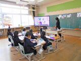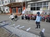 1月19日、1年生と上市認定こども園の園児が合同で凧あげをしました。お互い自己紹介をした後、