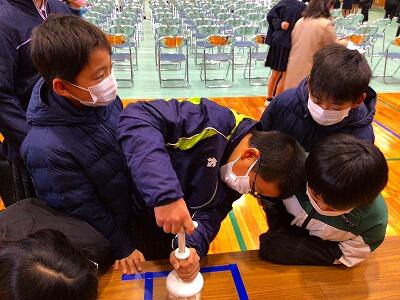 23日に新見ライオンズクラブの主催で「青少年育成事業」があり、5年生が参加しました。新見市哲多町出身の瀧口博士さんの「宇宙への夢と未来」と題した講演がありました。瀧口さんは、JAXA(宇宙航空研究開発機構)で働かれており、ご自身の現在に至るまでの経緯や仕事の内容など、詳しく丁寧にお話をしてくださいました。その他、思誠小学校の体育館には、展示ブースや体験コーナーなど、子ども達が興味のあるものが用意されており、子ども達は、楽しそうに見たり、体験したりしていました。この機会を通して、果てしない宇宙への思いや夢をもつことにつながり、「夢をもつ」きっかけづくりになったのではないかと思いました。子ども達が、自分の夢をもって健やかに成長してくれることを改めて強く感じた事業になりました。終了後のバスを待つ時間、子ども達は、準備してくださった椅子の片付けを手伝うなど、心温まる姿が見え、嬉しく感じました。しっかり子ども達が育っています!!